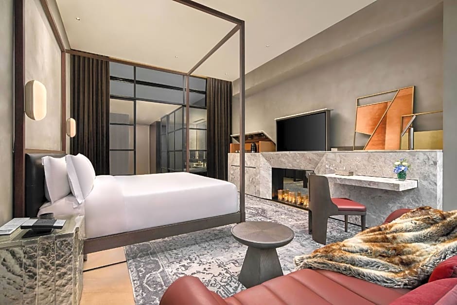 Guests will have a special experience as this suite features a hot tub. The spacious suite offers air conditioning, a mini-bar, as well as a private bathroom featuring a bath and a shower. The suite provides a TV, a coffee machine, a wardrobe, a safe deposit box as well as city views. The unit offers 1 bed.